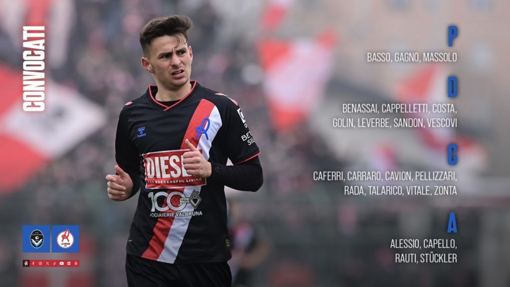 In vista della partita Giana Erminio-L.R. Vicenza, incontro valido per la trentunesima giornata di Serie C Sky Wifi in programma sabato 7 marzo alle ore 14:30 allo Stadio Città di Gorgonzola, sono stati convocati i seguenti calciatori: