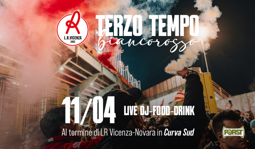 La società L.R. Vicenza è lieta di annunciare che al termine della partita L.R. Vicenza-Novara, incontro valido per la 36ª giornata di Serie C Sky Wi-Fi 2025/25, si terrà presso il settore Curva Sud il terzo tempo biancorosso, evento organizzato dal club che sarà aperto a tutti con musica dal vivo, food & beverage e tanto altro ancora.