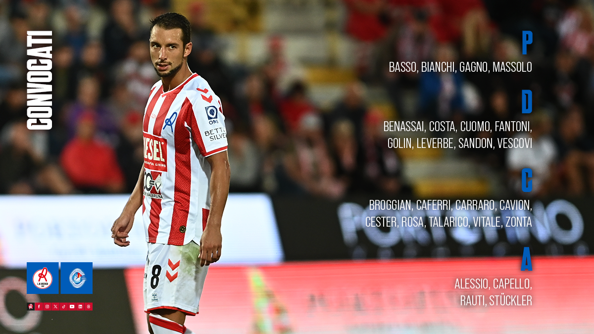 In vista della partita L.R. Vicenza-Albinoleffe, incontro valido per la decima giornata di Serie C Sky Wifi in programma domenica 19 ottobre alle ore 14:30 allo stadio Romeo Menti, sono stati convocati i seguenti calciatori:
