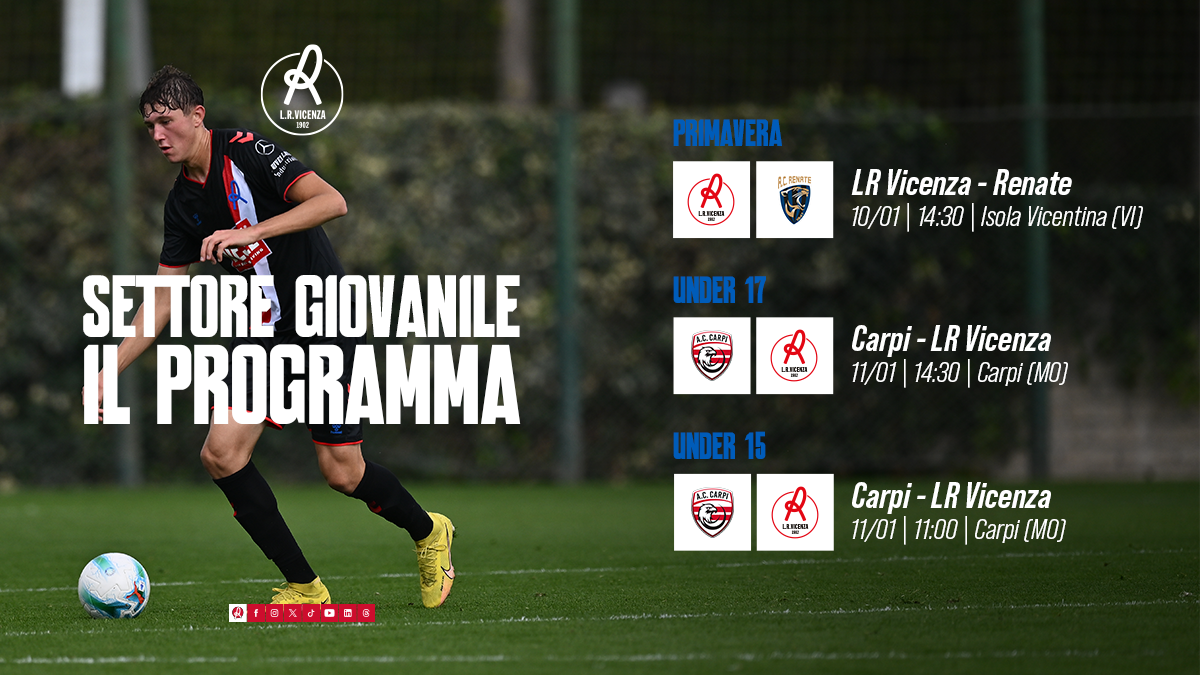 La società L.R. Vicenza è lieta di presentare il programma del settore giovanile del fine settimana.