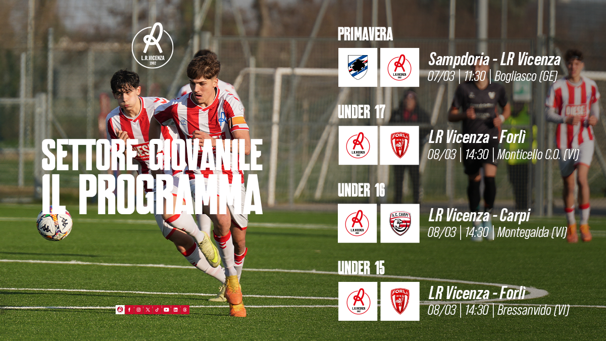 La società L.R. Vicenza è lieta di presentare il programma del settore giovanile del fine settimana.