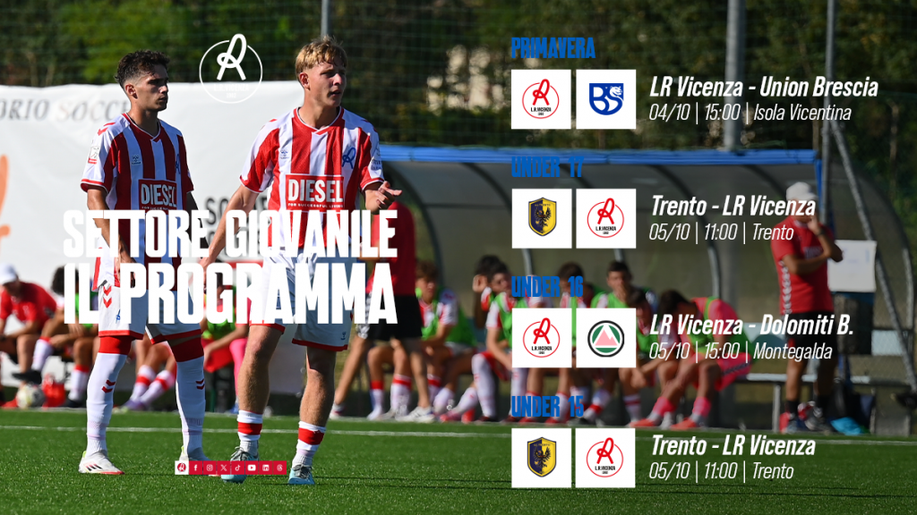La società L.R. Vicenza è lieta di presentare il programma del settore giovanile del fine settimana.
