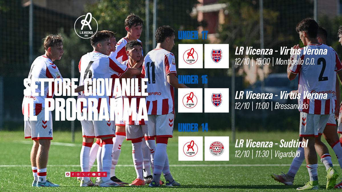 La società L.R. Vicenza è lieta di presentare il programma del settore giovanile del fine settimana.