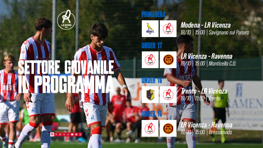La società L.R. Vicenza è lieta di presentare il programma del settore giovanile del fine settimana.