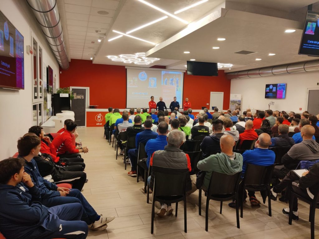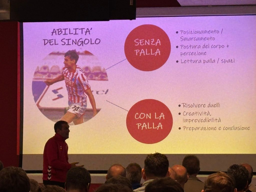 A guidare l’approfondimento tecnico sono stati due figure chiave del vivaio berico: Gabriele Stevanin, allenatore dell’Under 17, che ha illustrato strategie e principi per la finalizzazione e la costruzione dell’azione offensiva e Lorenzo Simeoni, responsabile tecnico del Settore Giovanile, che ha fornito un quadro generale sull’importanza della formazione continua e della filosofia di gioco del club. I relatori hanno messo in luce come “L’arte del gol” non sia solo frutto del talento individuale, ma il risultato di una metodologia di allenamento specifica, che cura ogni dettaglio: dalla scelta di tempo all’occupazione degli spazi, dalle combinazioni veloci alla gestione della pressione difensiva avversaria.