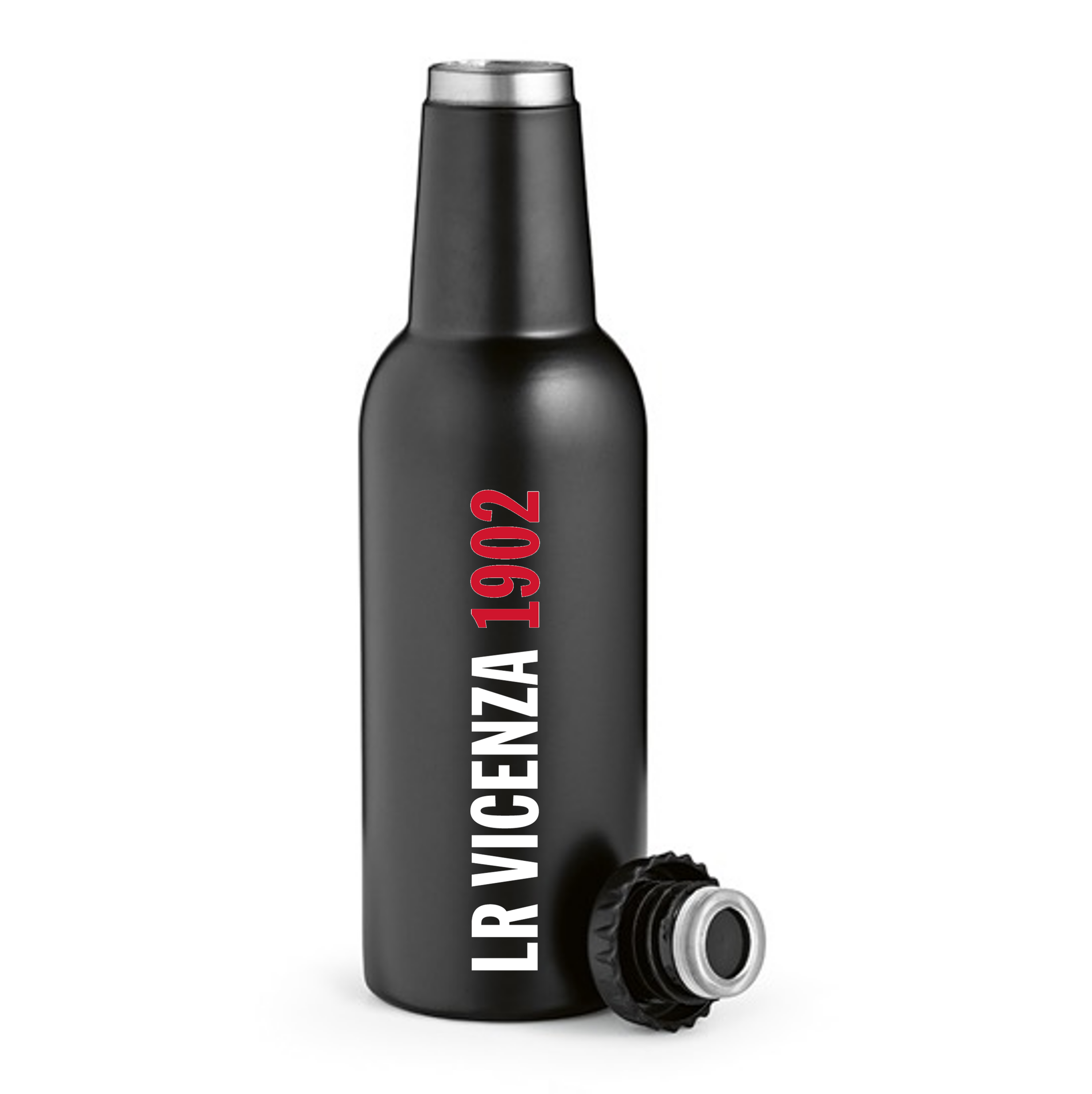 La nuova borraccia LR Vicenza in acciaio inox riciclato è l’accessorio che unisce funzionalità e carattere. Il suo esclusivo design a forma di bottiglia di birra cattura subito l’attenzione, rendendola un prodotto unico nel suo genere.