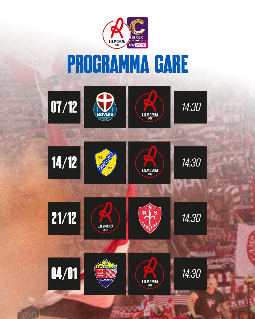 La società L.R. Vicenza riporta il programma gare dalla 17 ª giornata di andata alla 1ª giornata di ritorno nelle date e con i relativi orari.