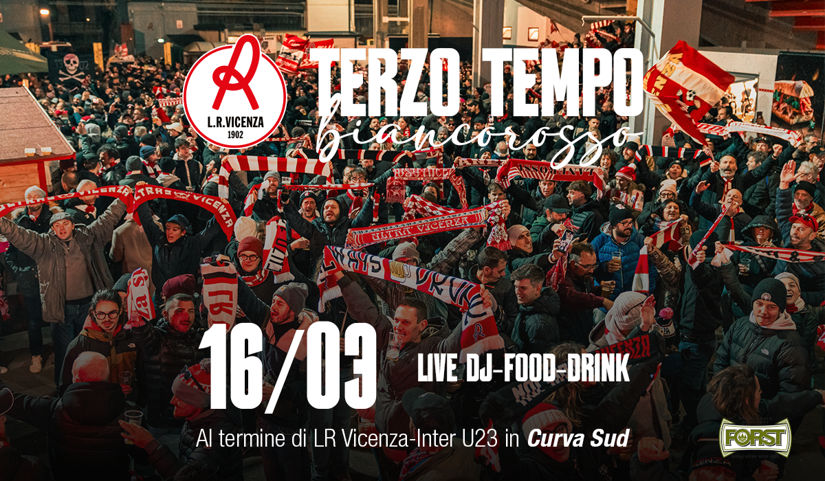 La società L.R. Vicenza è lieta di annunciare che al termine della partita L.R. Vicenza-Inter U23, incontro valido per la trentaduesima giornata di Serie C Sky Wifi 2025/2026, si terrà presso il settore Curva Sud il terzo tempo biancorosso, evento organizzato dal club che sarà aperto a tutti con musica dal vivo, food and beverage e tanto altro ancora.